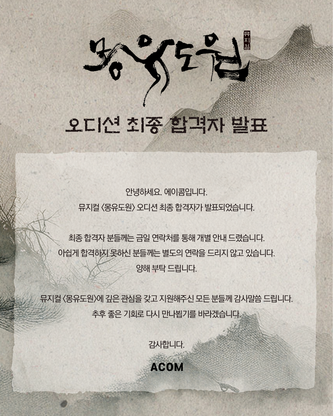 ¹ÂÁöÄà <¸ùÀ¯µµ¿ø> ¿Àµð¼Ç ÃÖÁ¾ ÇÕ°ÝÀÚ°¡ ¹ßÇ¥µÇ¾ú½À´Ï´Ù.